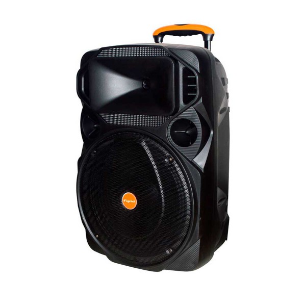 AMPLIFICADOR KARAOKE FUJITEL 12"L BT/MIC WLESS/USB/SD/FM Código: I160KARAOKEBT12L *Parlante Portátil 12?. *Ecualizador. *Luces (Botón ON/OFF). *Color Negro. *Potencia 120W RMS. *Bluetooth. *Radio FM. *Lector SD. *Lector USB. *Line-In. *Función Karaoke. *Micrófono Inalámbrico. *Batería 3.7V 1800 Mah.